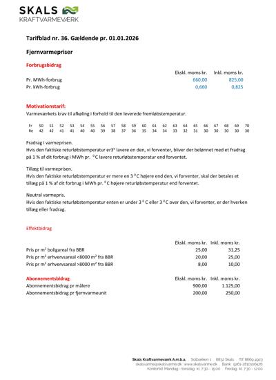 Tarifblad 01 01 2026 For Skals Kraftvarmeværk